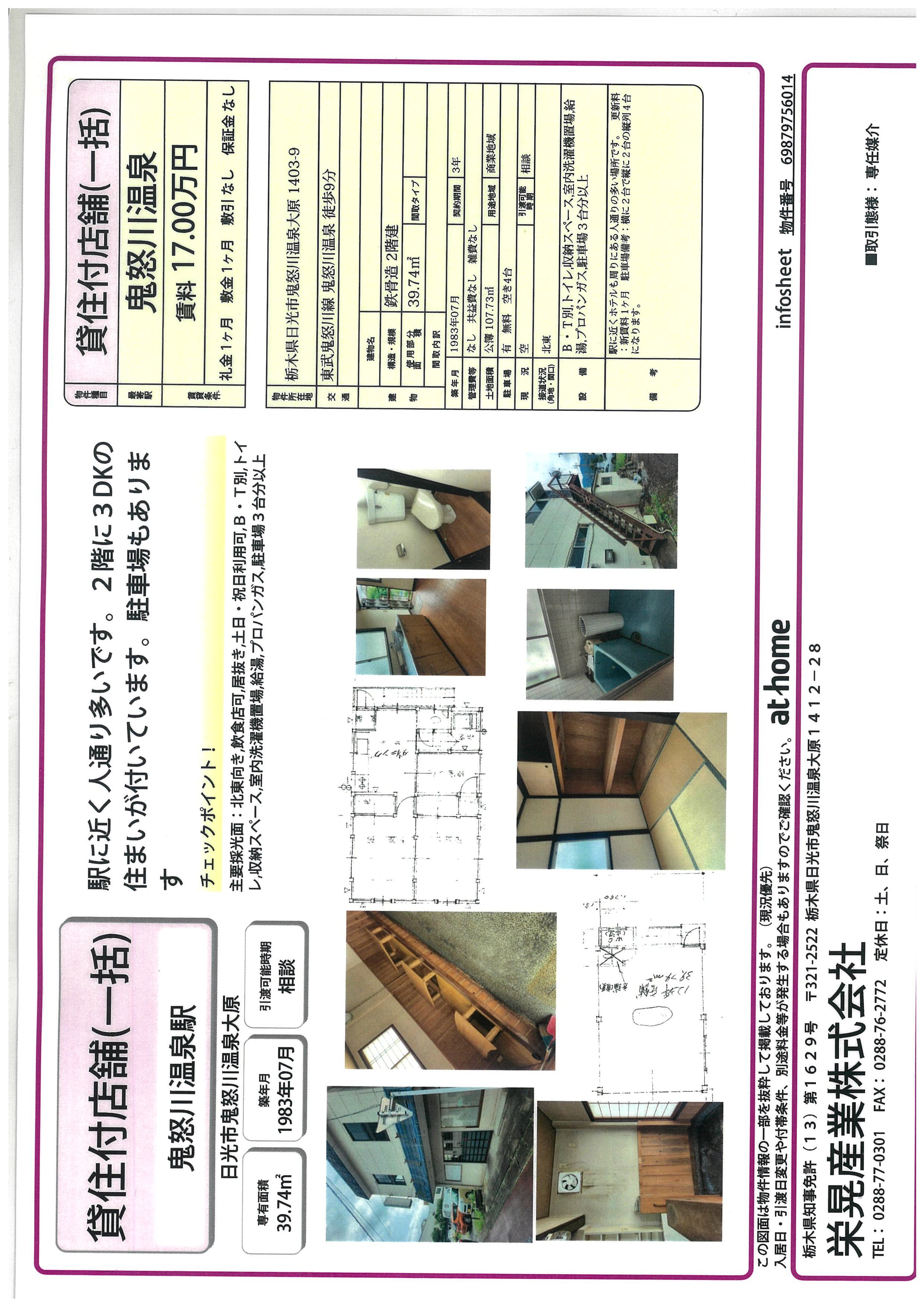 駅前店舗付き住宅 物件詳細 日光市、鬼怒川周辺のアパート・マンションは栄晃産業へ