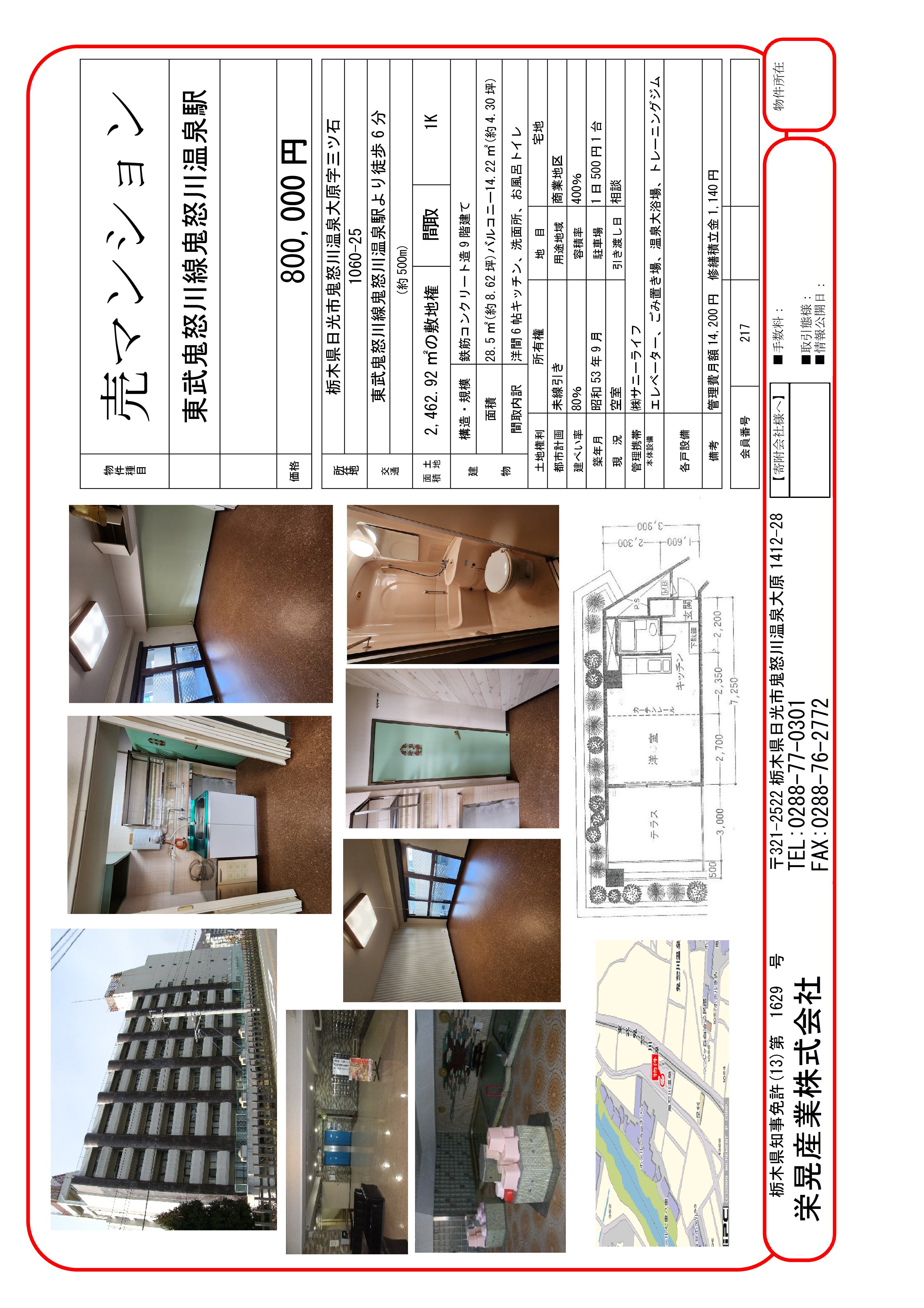 鬼怒川温泉マンション217 物件詳細 日光市、鬼怒川周辺のアパート・マンションは栄晃産業へ