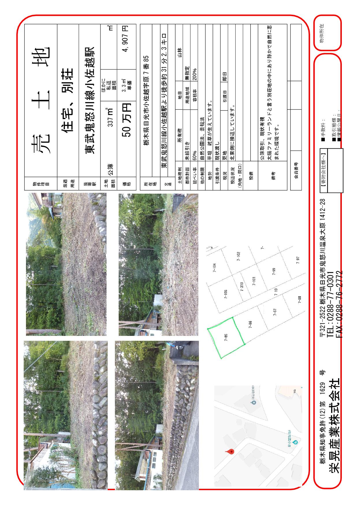 平山様土地 物件詳細 日光市、鬼怒川周辺のアパート・マンションは栄晃産業へ